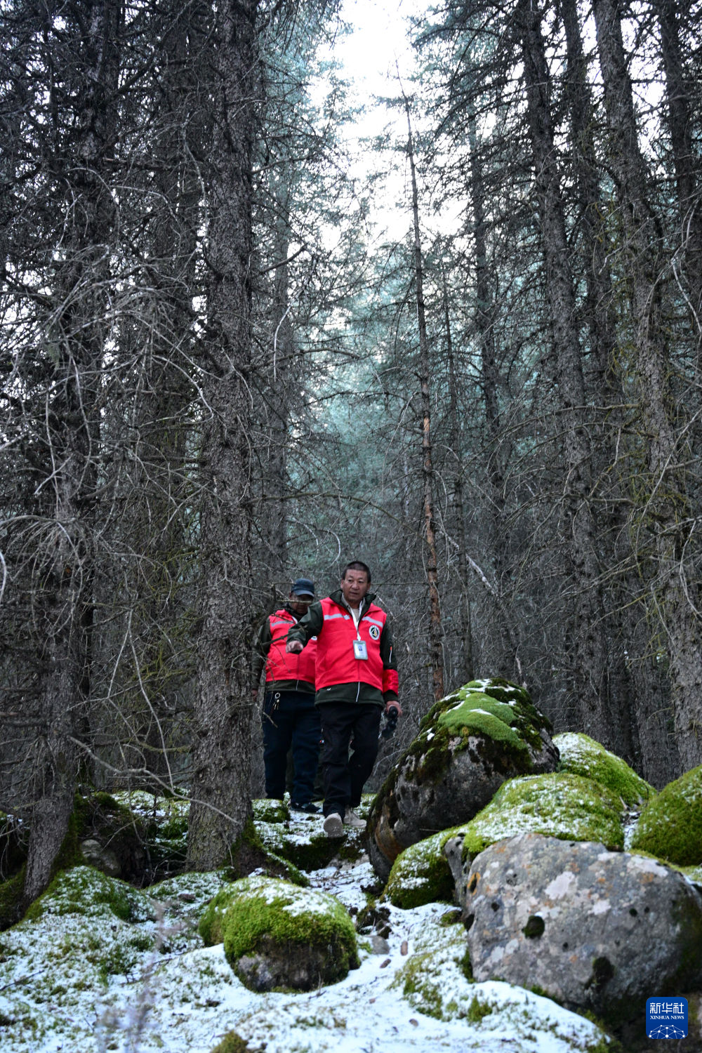 11月8日,护林员在青海省海北藏族自治州祁连县阿咪东索林区内巡护。 新华社记者 齐芷玥 摄