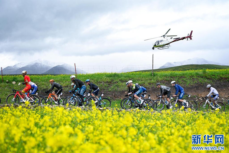 (资料照片)第24届环青赛,参赛选手在比赛中骑行。新华社记者 张龙 摄