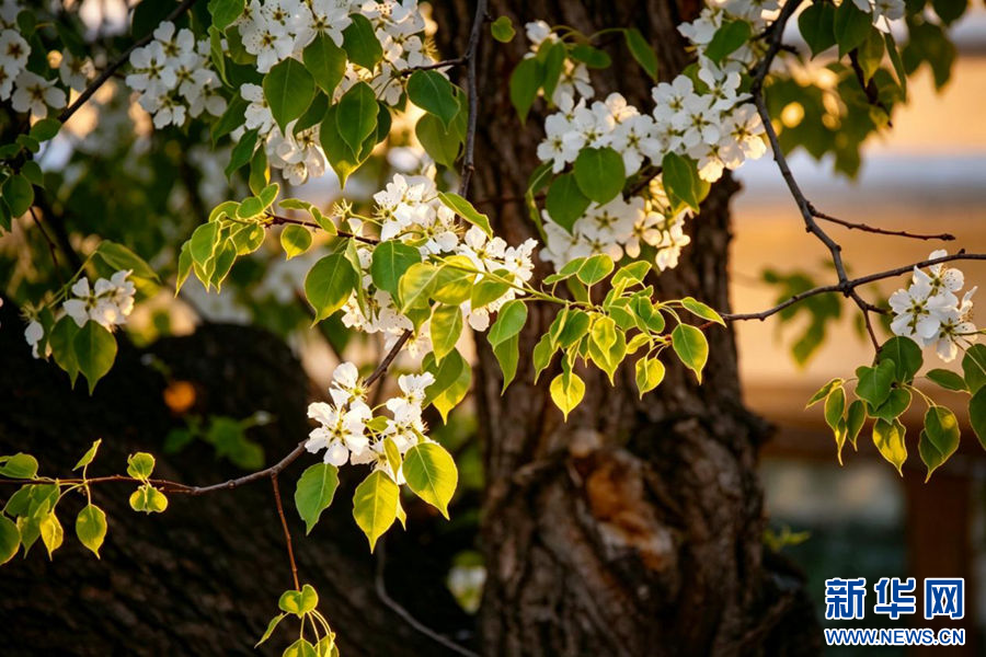 这是4月13日在贵德县拍摄的盛开的梨花。(新华社记者 张龙 摄)