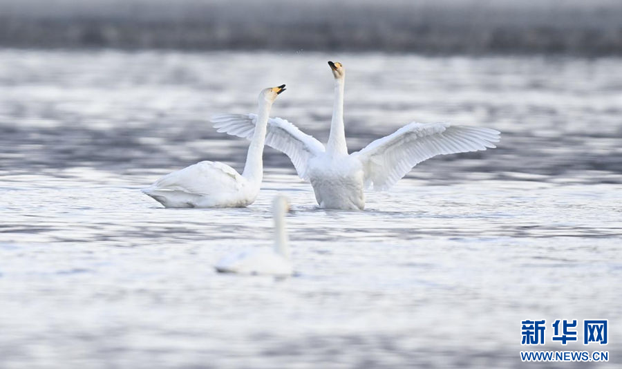 这是2025年12月2日在化隆回族自治县境内的黄河边拍摄的天鹅。 新华社记者 齐芷玥 摄
